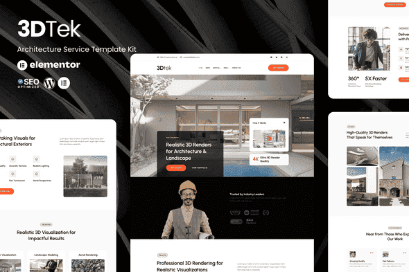 3Dtek is a sleek and professional Elementor Template Kit designed for businesses offering 3D rendering services, particularly in the fields of architecture and landscape visualization. This dark-modern template is optimized to showcase realistic visuals, compelling project presentations, and a seamless client journey. With its ultra-HD render-focused layout and engaging structure, 3Dtek helps boost your credibility as a cutting-edge 3D solution provider. Whether you’re targeting real estate firms, architects, or urban developers, this kit empowers you to present your services, portfolio, and team in a clean, high-impact format. SEO-optimized and fully responsive, 3Dtek is ready to elevate your brand’s digital presence. All sections are easily customizable—no coding required—making it an excellent choice for agencies or freelancers looking to stand out in a competitive market.