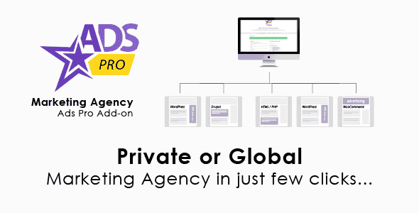 This add-on for Ads Pro allows you to create a really HUGE system to Manage Advertising on WordPress (can be used 25+ ad templates and 20+ display types) and Non-WordPress Sites (via iframe, can be used 25+ ad templates in default display type). Marketing Agency Add-on can be used both to create a Global Marketing Agency (users can sell ads on their sites – you will be able to earn commission for sale ads) or Private Marketing Agency (you can sell ads on your sites).