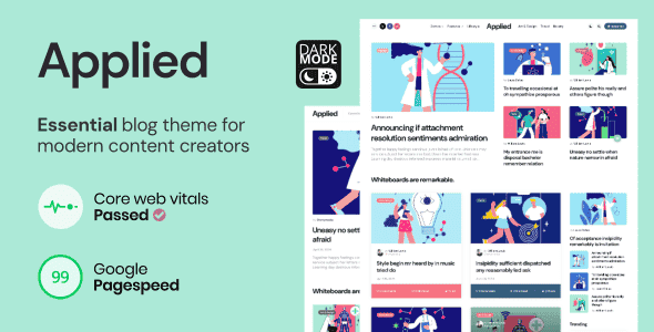 Applied is an essential blog theme for modern content creators. Uncomplicated & easy to use, Applied has extensive theme options, easy monetization with dedicated advertising areas and is Google Pagespeed and Core Web Vitals optimized.
