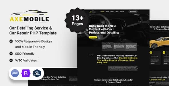 Axemobile is a professionally designed HTML and PHP template built specifically for automotive detailing and car repair services. Ideal for car detailers, auto workshops, vehicle maintenance centers, paint correction professionals, ceramic coating providers, and other auto care businesses looking to establish a professional and impactful online presence.