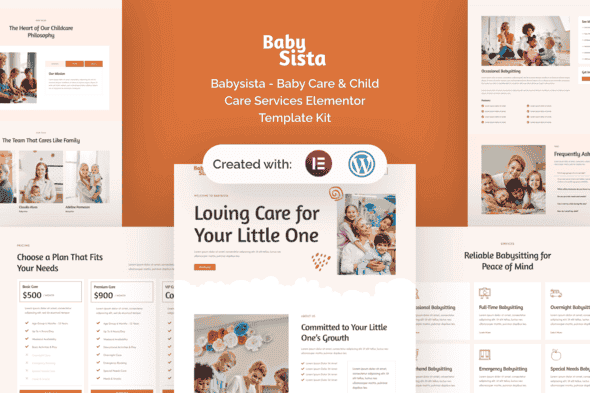 Babysista is a warm and welcoming template kit designed for baby care, childcare services, daycare centers, and nanny agencies. Built for WordPress with Elementor, this kit allows users to create a professional and visually appealing website effortlessly, without any coding skills.