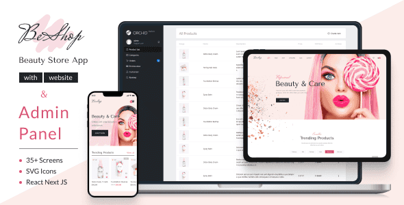 BeShop – Beauty Store App with React Next JS Website and Laravel Orchid Admin Panel