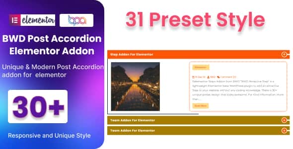 - Blog Post Accordion – Post Accordion is a lightweight Elementor base WordPress plugin to add an attractive Post Accordion to your website. There are 30+ unique preset Post Accordions that look awesome.