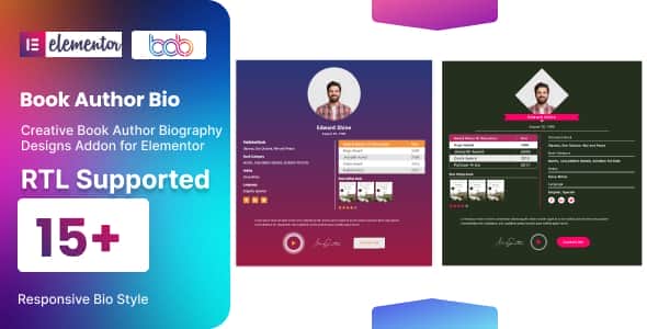 - Book Author Bio – Book Author Bio is a lightweight Elementor-based WordPress plugin to add an attractive Author Biography to your website. 15+ unique preset bio styles look awesome.