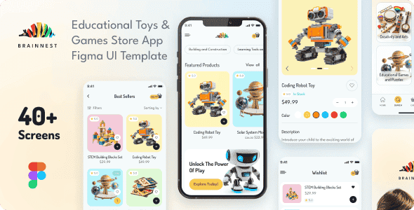 BrainNest – is a high quality pack designed for Toys Store. The package containing tons of useful elements and components to create mobile apps. It also includes 40+ ready-made screens for iOS to make your design flow simple.