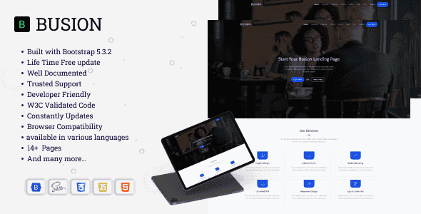 Busion is a One Page Template is an ideal layout for Business Startups, web studio and innovative organizations. Responsive in view of Bootstrap. This is one page for setting your data. All records and code has been efficient and pleasantly remarked for simple to alter.
