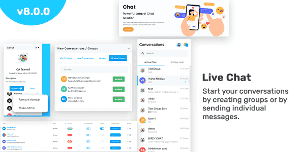 InfyChat is a web-based chat system implemented using the Laravel framework. It’s built on Bookstrap4 with CoreUI Theme with JQuery and MYSQL database.