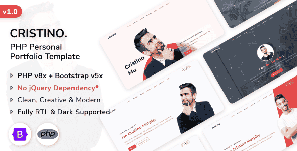Cristino is a responsive PHP personal portfolio template. It’s a modern, creative, clean, professional, attractive personal template. Cristino is fully Built with the PHP v8.x & Bootstrap v5.3.3. It has been optimized to facilitate your time and money. It’s well documented which will help you to get your site running easily and fast. You can customize it very easily to fulfill your business needs.