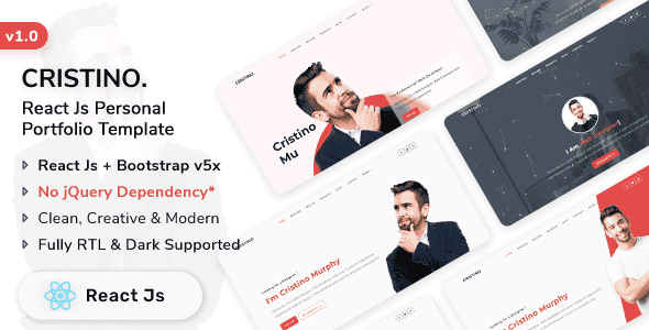 Cristino is a responsive React JS personal portfolio template. It’s a modern, creative, clean, professional, attractive personal template. Cristino is fully Built with the React Js v18.2.0 & Bootstrap v5.3.0. It has been optimized to facilitate your time and money. It’s well documented which will help you to get your site running easily and fast. You can customize it very easily to fulfill your business needs.