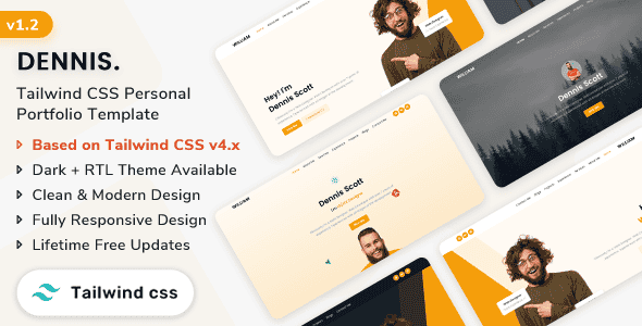 dennis is a responsive personal portfolio template. It’s a modern, creative, clean, professional, attractive personal template. It is a beautifully handcrafted, pixel-perfect HTML5 personal template based on the latest Tailwind CSS v4.1.11. Dennis comes with 5 home demos Html pages. All files are organized we believe it will be easy to use and edit them. This template is well-organized and very easy to customize. It’s well documented which will help you to get your site running easily and fast. You can customize it very easily to fulfill your business needs.