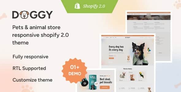 This Doggy – The Pets & Animals Responsive Shopify Theme is elegant, customizable and colorful shopify theme most suitable for piece of is a beautiful responsive Pet store Shopify theme for Pet food shop, pet shop, animal shop, pet food store, cat shop, pet grooming, pet shelter, animal shelter, pet kennels, cages, pet house, aquarium, pet fish, home fish, birds, horse, pet animal dresses, dog food, pedigree, dog nutrition food, dog play toys, pet accessories, pet-related product eCommerce business website and all animal store website. Feel free to build best custom pet supplies, marketplace theme with this fully customizable, mobile-friendly shopify theme that supports, shopify login, drag and drop page builder, multilanguage etc.,