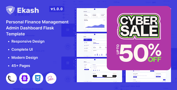 Ekash is a sleek and modern personal finance dashboard template built using Flask, CSS, and JavaScript. It includes pre-designed pages like Wallets, Budgets, Goals, and Transaction History, making it perfect for developers building financial web apps. The template features a responsive layout and clean design that adapts well to all devices.