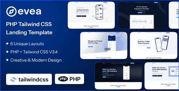 Evea is a fully responsive clean, and modern high converting App showcase landing template. It is built with PHP and Tailwind CSS v3.4.1. It offers a fully responsive layout that adapts seamlessly to any device, ensuring an optimal user experience. Its clean and well-structured code and clear comments make it easy to customize and tailor to your brand’s identity. Whether promoting a mobile app, software solution, or digital service. Evea creates a striking online presence. The template provides a sleek, organized layout, making it easy to showcase your content and engage users effectively.