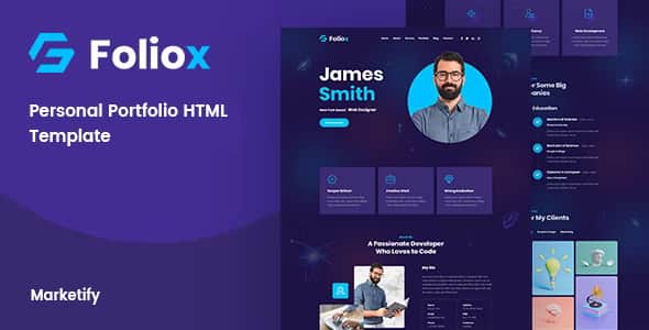 Foliox – Personal Portfolio HTML Template is for many purpose. It’s creative, minimal and clean design. It has all of the features of the business website. It’s suitable for any startup business, companies, agencies, and freelancers which need a professional way to showcase their projects and services with 100% super responsive experience.