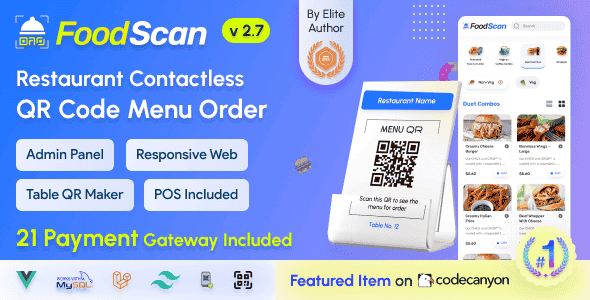 FoodScan – Qr Code Restaurant Menu Maker and Contactless Table Ordering System with Restaurant POS