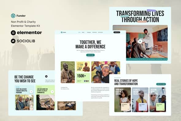 Funder is an Elementor Template Kit for quickly and easily creating Non Profit & Charity website using the Elementor Page Builder plugin for WordPress. Suitable for Non Profit, Charity, NGO, Organization, Campaign, Donation, Program, Volunteer, Help, Action, Health, Community, etc. Style your WordPress website with this creative and modern web design style template kit to bring a modern feel to your blog.