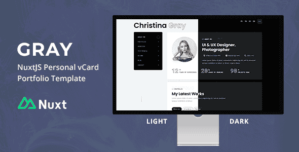 Gray is a Vue NuxtJS Personal vCard, Portfolio template with modern, clean design and, a fully responsive layout. It has all the components, and features that you need to launching your modern, unique personal website. All the codes, and files are highly organized, and simplified in order to make it easy to use. Check out the demo.