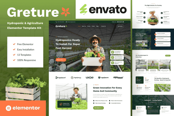 Greture is the perfect Elementor Template Kit for modern agriculture and hydroponic businesses. This all-in-one kit is designed for organic farms, sustainable growers, and agricultural consultants who want to build a professional online presence. With a fresh, earthy design and essential pages like Home, Services, and Projects, you can showcase your work and attract more clients. This kit is great for businesses that require a quick, SEO-friendly, and fully customizable platform. This template package allows for a responsive mobile view. For more information on this template kit, please see the demo link and enjoy the design.
