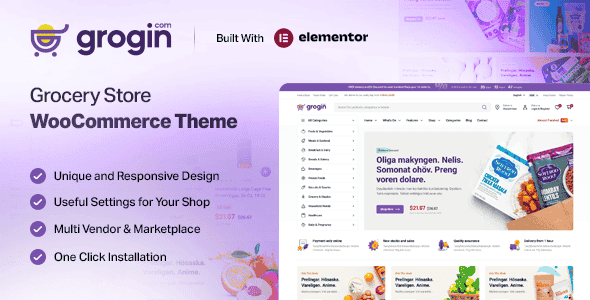 If you are planning to build a Grocery Shop, then Grogin – Grocery Market and Organic Food Shop eCommerce Elementor WooCommerce WordPress Theme is what you need. This amazing theme can help you to build your own grocery store, organic food shop, online supermarket, woocommerce grocery, grocery multivendor, agriculture, marketplace, multivendor, vegetables, food store, food delivery, food business, multi vendor, dokan, food product and online food products, electronics store, fashion store, toys store only in hours. Thanks to the high-end and most preferred components on this theme, anyone who is not even experienced in building and managing websites can easily create their own website. If you would like to learn more about the features of this amazing WordPress Theme, then keep reading.