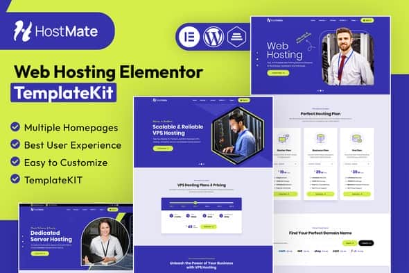 HostMate is a premium Elementor Template Kit designed specifically for web hosting companies, domain registrars, and IT service providers. Featuring a clean and modern design, this kit provides all the tools you need to build a responsive and high-performance hosting website effortlessly.