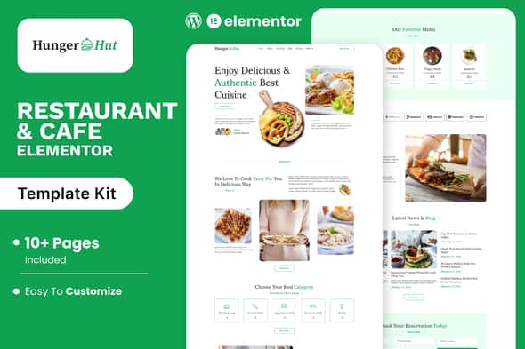 HungerHut is a stylish and appetizing Elementor template kit crafted for restaurants, cafes, bistros, and food delivery services. With its warm design, mouth-watering visuals, and easy navigation, HungerHut is perfect for showcasing your menu, chef specials, customer reviews, and online reservations. Whether you run a cozy coffee shop, a fine-dining restaurant, or a fast-food joint, this kit provides all the essential pages to present your culinary brand with flavor and flair. Fully responsive and effortlessly customizable, HungerHut serves up a seamless experience for food lovers and business owners alike — helping you turn visitors into loyal diners.