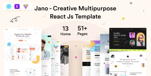 Jano is a multi-purpose, powerful, beautiful and high-performance website template. The template comes with 13 Home pages & 51+ multi-page demos and variants. Featuring stunning plugins, ideas, and designs for a modern website. You will easily find a stunning design that suits your needs. Jano is a websites which is built with the Latest ReactJS + Bootstrap . This template is suitable for corporate, agencies, freelancers, individuals as well as any type of business to showcase their company history, services, works, portfolio, and projects in the most creative and professional looking. In a few words, it is a powerful, easy-to-use multi-purpose template.
