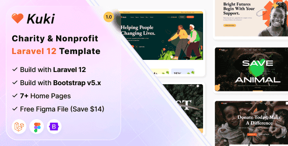 Kuki – Charity & Nonprofit Laravel 12 Template with a modern contemporary charity design. It will be an ideal option for a charity, charity foundation, crowdfunding, donate, donation, foundation, fundraiser, fundraising, fundraising campaign, funds, ngo, non profit organization, non-profit, volunteer, business html template, company, company agency related websites. Kuki is highly customizable and looks awesome on tablets and mobile devices. We have coded all Components based Design and included best practice of web development – you can create great website layout based on Bootstrap or Grid. If you have any questions that are beyond the scope of this help file, please feel free to email via my user Page Contact form here. Thank you so much!