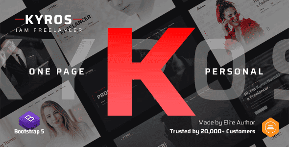 Kyros is an exclusive website template specially made for personal portfolio with elegant and professional design. Made using only the finest coding and design practices by experienced ThemeForest author with over 14 years of experience. Kyrios has stunning styles and elements to help you make professional website in no time. Get Kyros now.