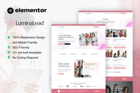 LuminaLead is beautiful elementor template kit for feminine business coaching. This cool elementor template kit suitable for agency that help woman to grow their business such as digital business, interior design, design agency, digital products, coaching, fashion, health, art wellness, and beauty website service. It has 12+ pre-built templates with beautiful, professional and modern style. Save your time and make feminine business coaching website easily with this elementor template kit.