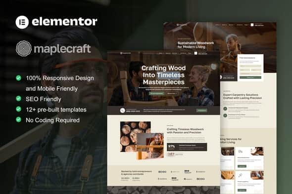 MapleCraft is Elementor Pro Template Kit for Carpenter & Custom Furniture website. This template has clean, modern, and professional look. You can easily build modern carpenter website that offer professional service such carpenter, woodworking, furniture repair & services, office furniture, kichen furniture, wood construction, etc.