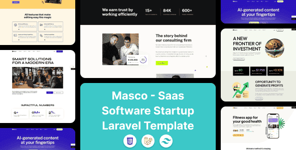 The Masco Laravel Template helps you create a professional website for your business needs. It is designed using Tailwind CSS, making development faster, cleaner, and fully customizable. You can easily adjust colors, layouts, and components without compromising design quality.