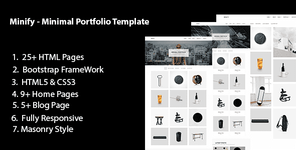 Minify template coded with beautiful and clean codes! Some powerful HTML files 100% valid W3 web standards.