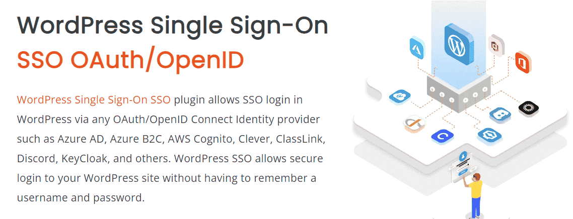 WordPress Single Sign-On SSO plugin allows SSO login in WordPress via any OAuth/OpenID Connect Identity provider such as Azure AD, Azure B2C, AWS Cognito, Clever, ClassLink, Discord, KeyCloak, and others. WordPress SSO allows secure login to your WordPress site without having to remember a username and password.