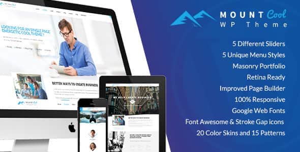 Mountcool an elegant and responsive one page WordPress theme. A perfect one page WP theme with a separate blog section suitable for product promotion, photographer, web design agency, event promotion, freelancer portfolio, fashion designer portfolio, and personal portfolio websites