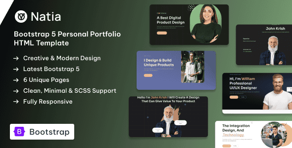 Natia is a sleek and modern personal portfolio template, perfect for showcasing your professional and creative work. It features a clean design that’s fully responsive, ensuring it looks great on any device. Built with the latest Bootstrap v5.3.3. Natia uses reusable HTML and modular CSS. Making customization easy and efficient.