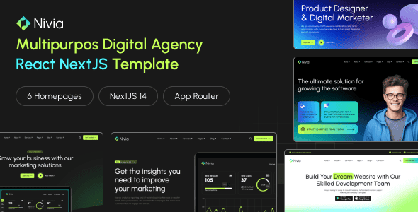 Nivia stands as a sleek and contemporary NextJS 14 template, tailored to cater to the needs of SaaS, startup, and agency companies. This versatile template is an excellent choice for a wide array of businesses, including digital agencies, IT firms, CRM providers, marketing agencies, human resource software developers, project management teams, and collaboration tool creators, as well as any other startup or SaaS ventures.