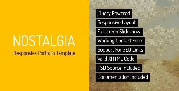 Nostalgia is a responsive HTML Portfolio Template – personal or corporate, based on full-screen slideshow and sliding pages. The Template is maintained in a minimalist, contrasting style. Background images kept in retro tones contrast with modern minimalist content. It is possible to add unlimited number of pages in the form of scrolling menu.