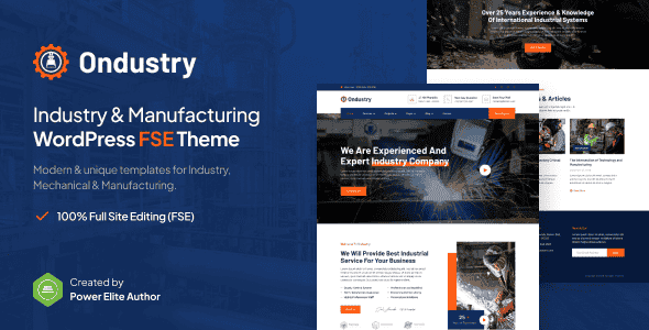 Introducing Ondustry, a WordPress theme designed for Industrial, Manufacturing, Engineering, Mechanical, Factory, and Machinery businesses. Fully compatible with the WordPress Block Editor and powered by the Gutenverse plugin, this theme offers a professional design with a 100% responsive layout and is easy to customize, so no coding is required.