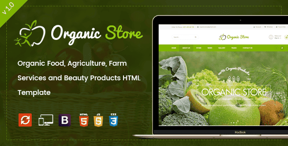 Organic Store HTML Template developed specifically for all types of organic products related to farms, farmer, food retail, food company, organic food, seed, fruits, etc