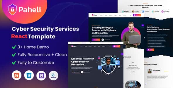 Introducing the Paheli React website template, tailored specifically for Cyber Security Services. It offers top-notch solutions for companies specializing in cybersecurity, covering computer security, network security, and web security. With its contemporary, sleek, and innovative design, it’s crafted using the latest technology for an exceptional online presence.
