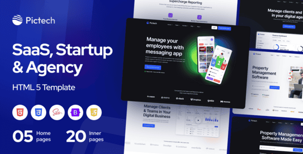 PicTech – Responsive HTML 5 Template for SaaS, Software, and Technology is a versatile, user-friendly, and mobile-optimized template designed with Bootstrap 5 and SaaS. It features 3 trendy technology homepage layouts and 14+ inner pages, providing a highly customizable, SEO-friendly solution for IT companies, SaaS providers, software developers, and tech startups. SaasPic is fully responsive and delivers an exceptional experience on all devices.