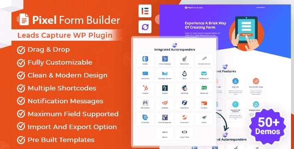 Pixel Form Builder Plugin help you create stunning landing pages, lead pages, contact form, subscription form and opt-in forms. You can create a nice, attracting page, ready to collect leads , completely transforms it into a lead generating and list building facility. Make every page your own by dropping new elements where you want them. Text, images, buttons, and even widgets such as countdown timers all snap into place with ease. Can easily integrate any of the autoresponder with the lead page.