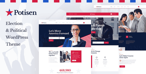 Potisen – Election & Political WordPress Theme is a WordPress Theme for politician, modern political leader, political party sites, political and office candidates, grassroot initiatives activist, election campaign, political and social movements. It can also be used as any non-profit organization, such as charity, event, campaign, fundraising etc. This theme is clean, super flexible, fully responsive, pixel perfect, modern and comes packed with powerful options. The theme has its own super powerful theme control panel with lots of useful options and tools to manage your site: Elementor Page Builder, Revolution Slider, Custom Icon Font, etc. and the theme apply the latest web technologies: Bootstrap 4, SASS, HTML5, CSS3, Font Awesome … Check the demos to see by yourself.