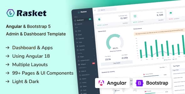 Rasket – Angular & Bootstrap Admin & Dashboard Template stands as a comprehensive premium admin UI Kit Template, harnessing the capabilities of Bootstrap v5.3.3 alongside contemporary web technologies such as SCSS, and JS, all enveloped in a sleek new brutalist design aesthetic. Laden with meticulously crafted components, this UI Kit ensures full responsiveness and high customizability, and boasts intuitive code to grasp, facilitating developers to effortlessly fashion it into a fully functional web application.