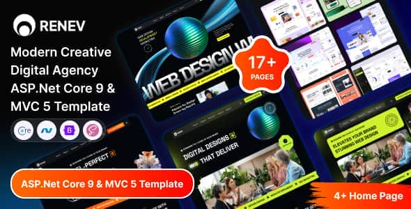 Renev is a Modern Creative Digital Agency ASP.Net Core 9 & MVC 5 Template, specially built for Creative Agency, Corporate websites, Portfolio websites, Designer, Web developers, Photographer, Fashion Designer, Personal Portfolio, and all kinds of Personal Portfolio & Business Purposes.