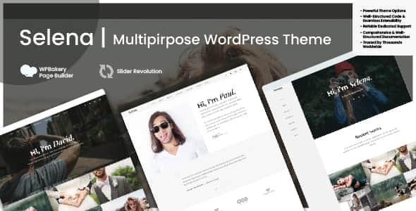 Selena – Multipurpose WordPress Theme is a versatile and high-performance template ideal for portfolios, personal websites, freelancers, and creative professionals. With its modern design, responsive layout, and easy customization, Selena helps you create stunning websites quickly. Powered by Bootstrap, it offers fast loading speeds, SEO optimization, and clean code for better search engine rankings. Featuring WP Bakery, Revolution Slider, and a variety of custom shortcodes, Selena ensures you have all the tools needed for a professional online presence. Fully translation-ready, WPML compatible, and MailChimp as well, Selena is perfect for building websites that stand out.