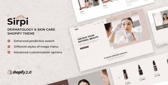 Sirpi – Beauty Cosmetic Shop Shopify Theme best for Skincare Treatment Clinics, Laser Body and beauty treatment Medical Shop, Dentist Equipment, Skincare Shops, Cosmetic Stores, Beauty Products Online Business, Hospital Supplies, Dermatologist Skin clinic Products, Cosmetology, Plastic surgeon, Health care, Fitness Supplement, Hair Transplant Surgery Tablets, Lab Tools, Diagnostic Centre, Ambulance Services, Medical Business Websites, Health Coach Books, Lifestyle Education Classes, Healthcare specialists, Medical Consultants & Pharmaceutical Company and medical Clinic websites.