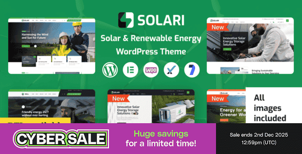 Solari is a professionally designed WordPress elementor theme specifically created for businesses in the solar energy and renewable energy, wind energy, sustainable energy, and solar solutions industries. It offers a range of features and customization options to cater to companies involved in solar energy, wind turbines, solar panels, repairs, and related services.
