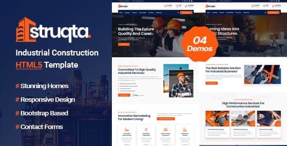 Struqta Industrial & Construction HTML Template gives you an opportunity to present your industrial, construction and building services. Save your expensive time and money. Everything you need to create your construction, engineering, architecture website is available straight from the box. Struqta layout looks beautiful at any size, be it a laptop screen, iPad, iPhone, Android Mobile or tablets. It has purpose oriented design, responsive layout, and special features.