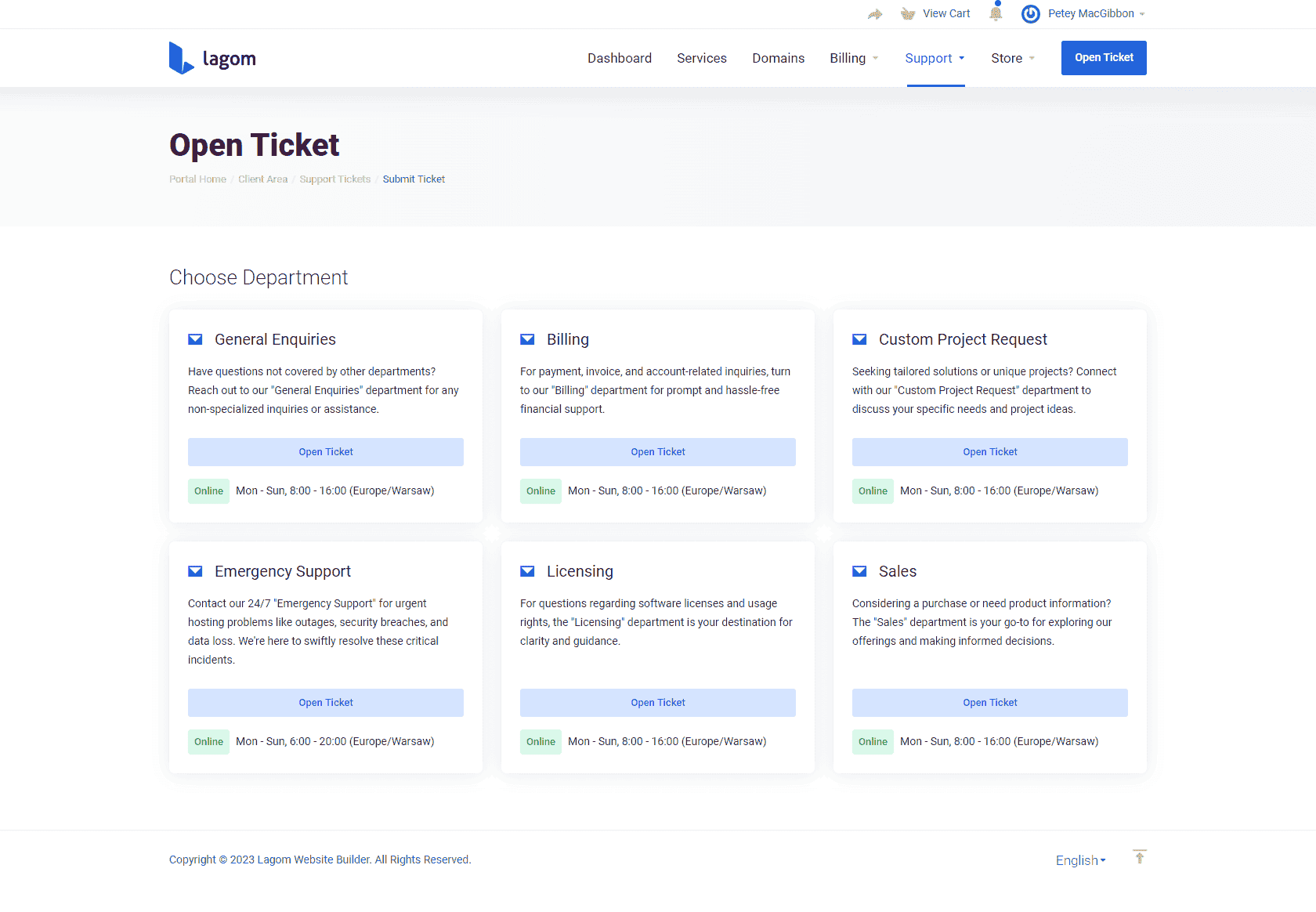 Support Hours for Lagom WHMCS Client Theme